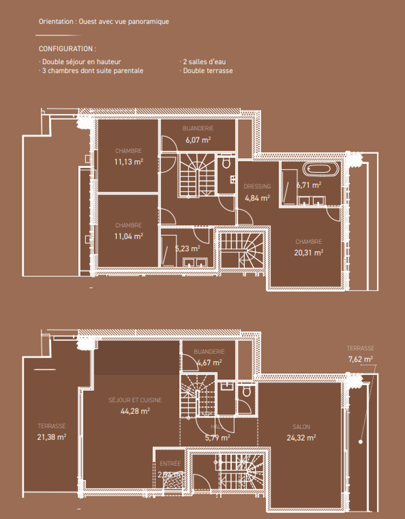 Ce duplex élégant allie volumes généreux, finitions soignées et performances énergétiques de dernière génération. Une atmosphère sereine et exclusive, pensée pour ceux qui recherchent un cadre de vie en hauteur, entre ciel et fleuve.