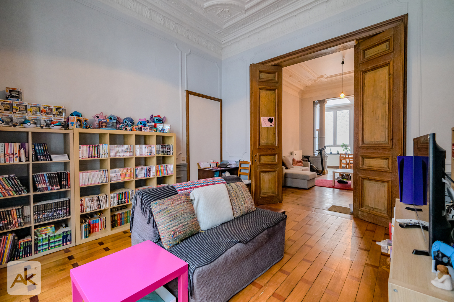L’immeuble séduit dès le premier regard par sa façade de caractère, témoin d’une architecture soignée et intemporelle. À l’intérieur, les éléments anciens préservés, hauts plafonds, moulures, cheminées décoratives se marient harmonieusement avec les aménagements contemporains, créant une atmosphère chaleureuse et élégante.