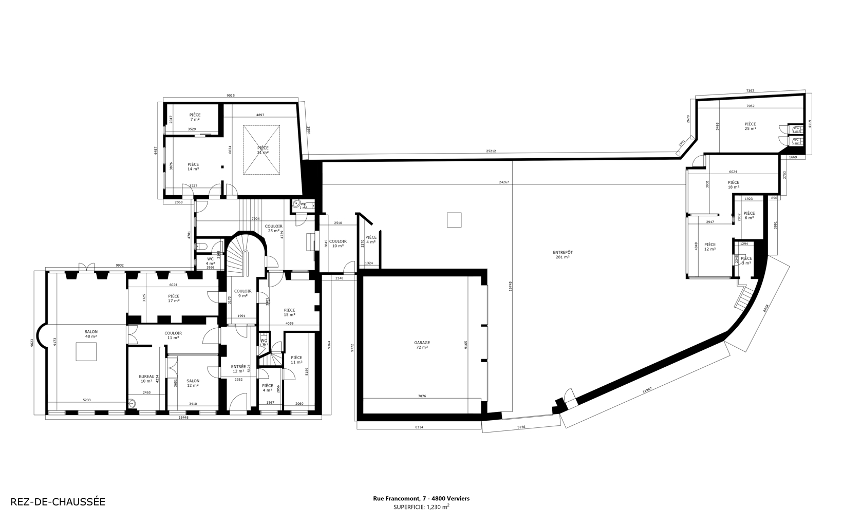 Possibilité d’acquérir en supplément un entrepôt de 400m² une pâture à l’arrière de la propriété de +- 4.300m² accessible via la rue et le parc en face de +- 1.500m²