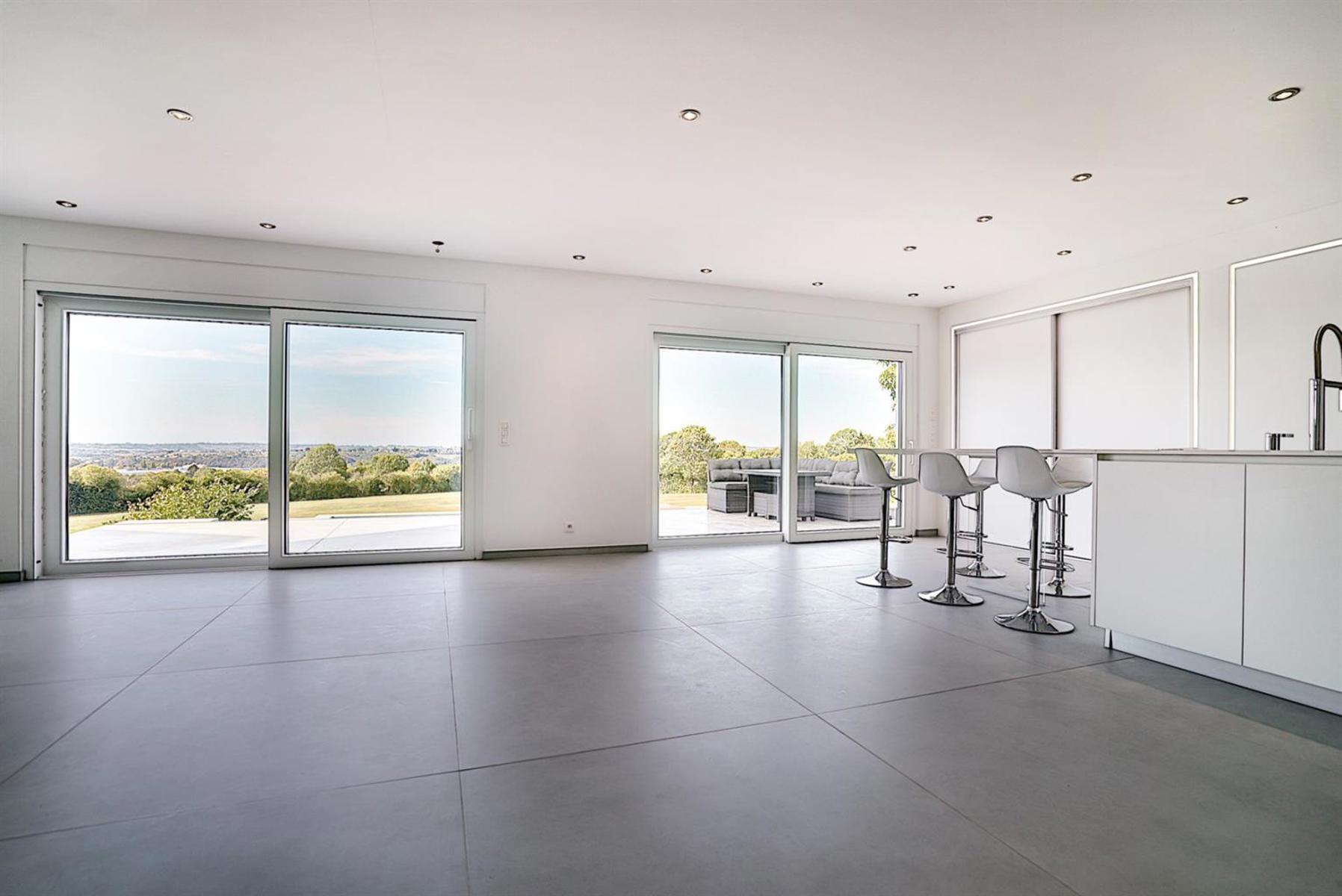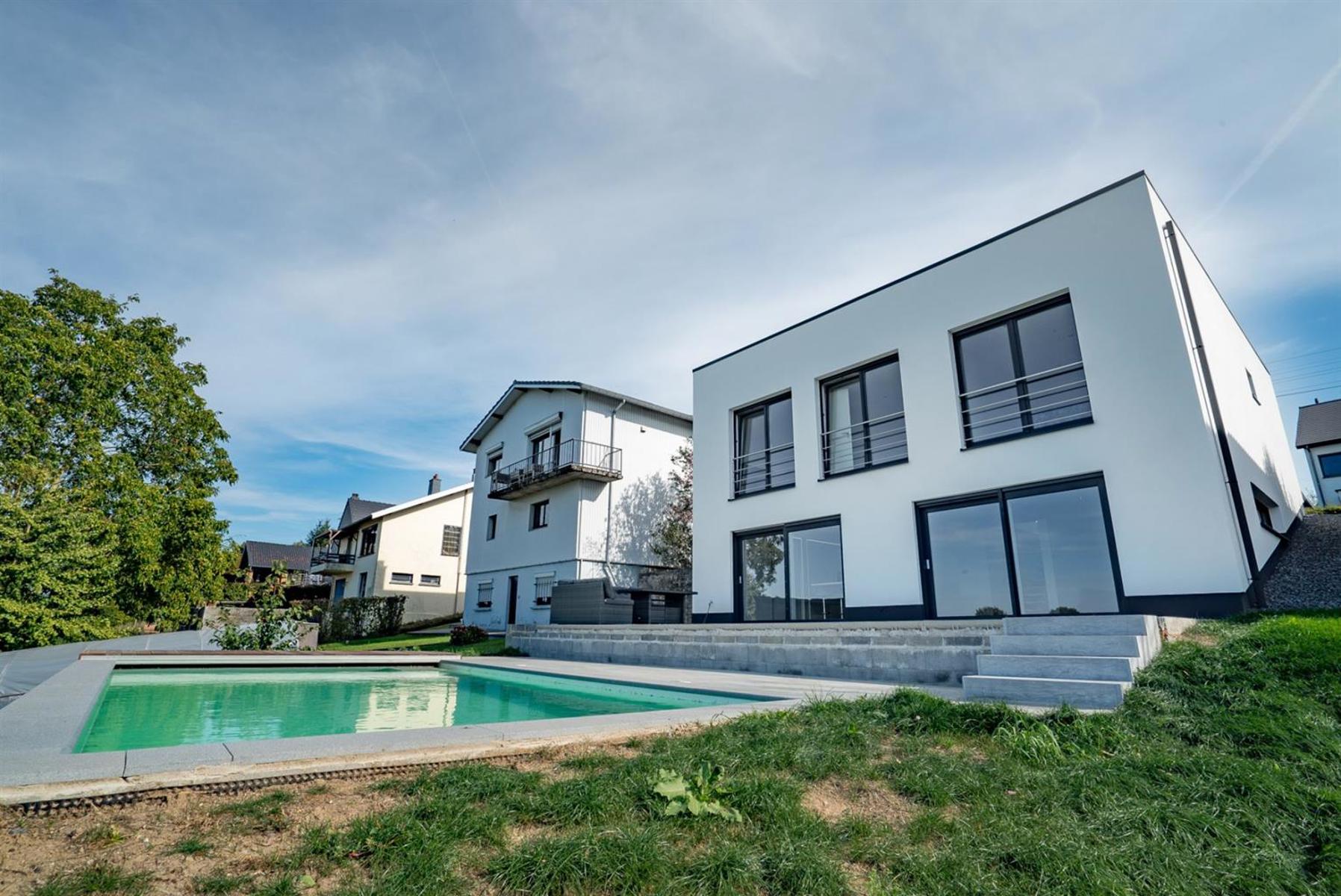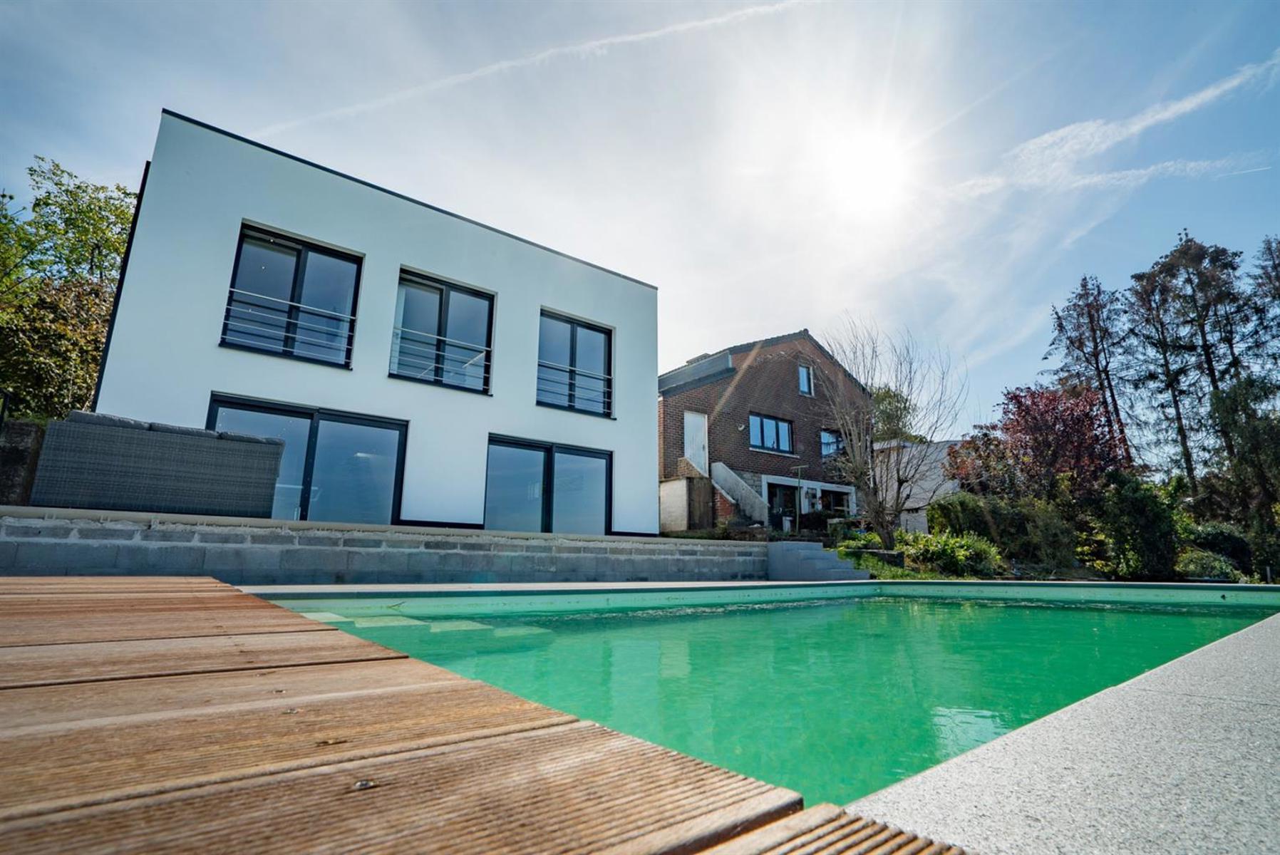 Allen Keapler and Partners, votre service immobilier haut de gamme en province de Liège, vous offre l’opportunité exceptionnelle de devenir les heureux propriétaires d’une sublime villa contemporaine ! Ses espaces lumineux, ouverts et idéalement agencés optimiseront votre qualité de vie une fois que vous y serez installés. Pour ce bien, uniquement des matériaux de qualité ont été choisis avec goût. Les dernières technologies ont également été utilisées dans cette nouvelle construction. Vous ne passerez évidemment pas à côté de sa vue dégagée à couper le souffle ni de sa piscine idéalement orientée pour être ensoleillée tout au long de la journée. Côté extérieur, vous retrouverez également un jardin entièrement aménagé à plat en contre bas de la piscine et une vaste terrasse à hauteur de celle-ci. Quelques aménagements extérieurs sont à prévoir si vous souhaitez préserver votre intimité une fois à l’extérieur. Ce bien est une opportunité rare sur le marché immobilier, saisissez-la ! (Cette nouvelle construction vient d’être finalisée fin mars 2018 et est donc soumise au régime TVA (21%) au lieu des frais d’enregistrement)