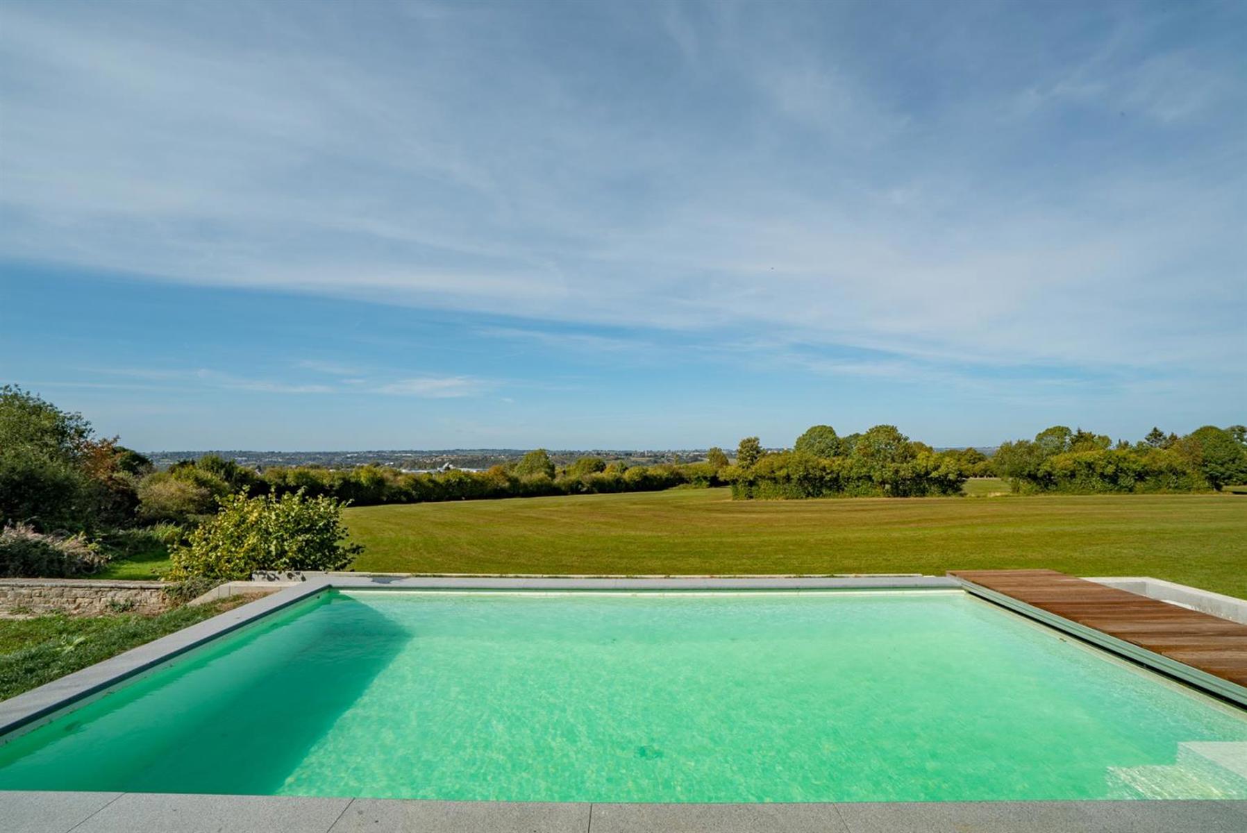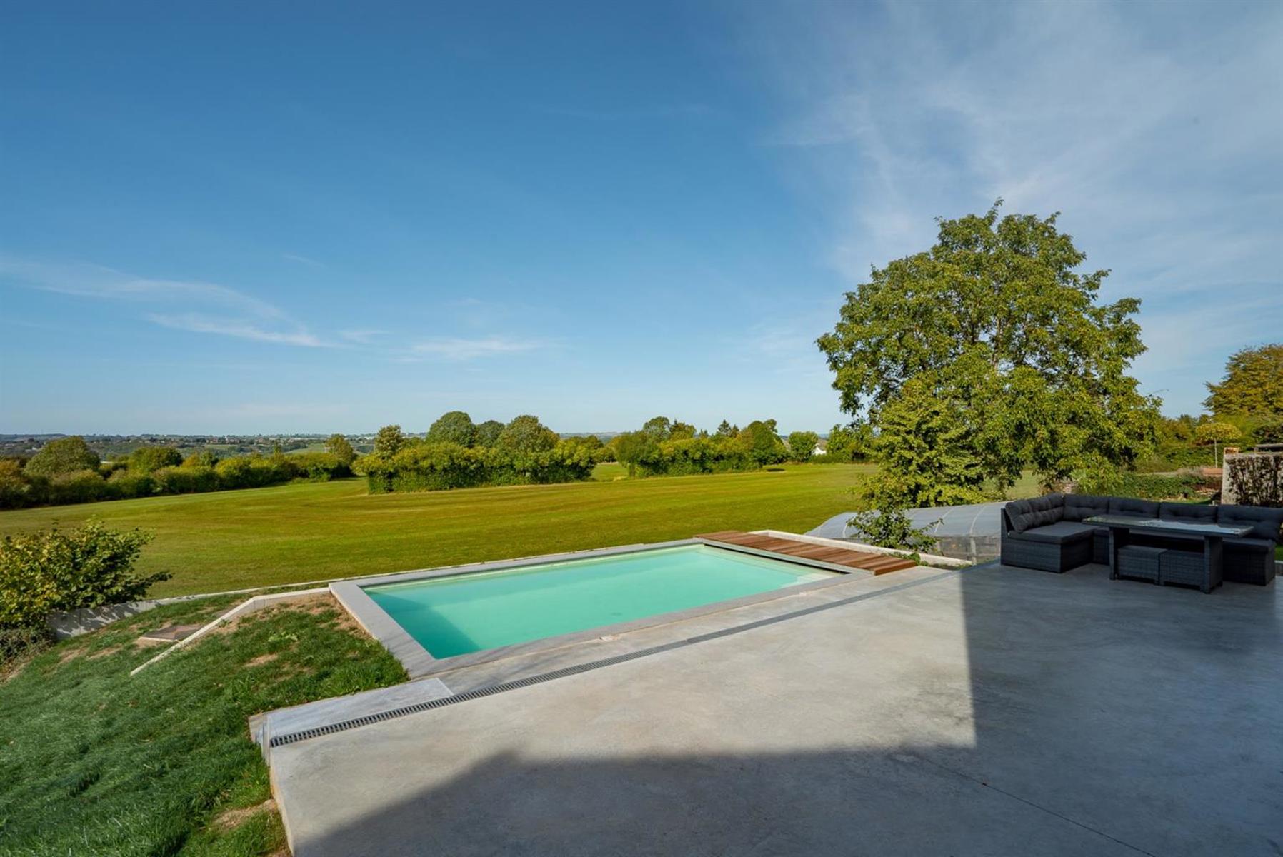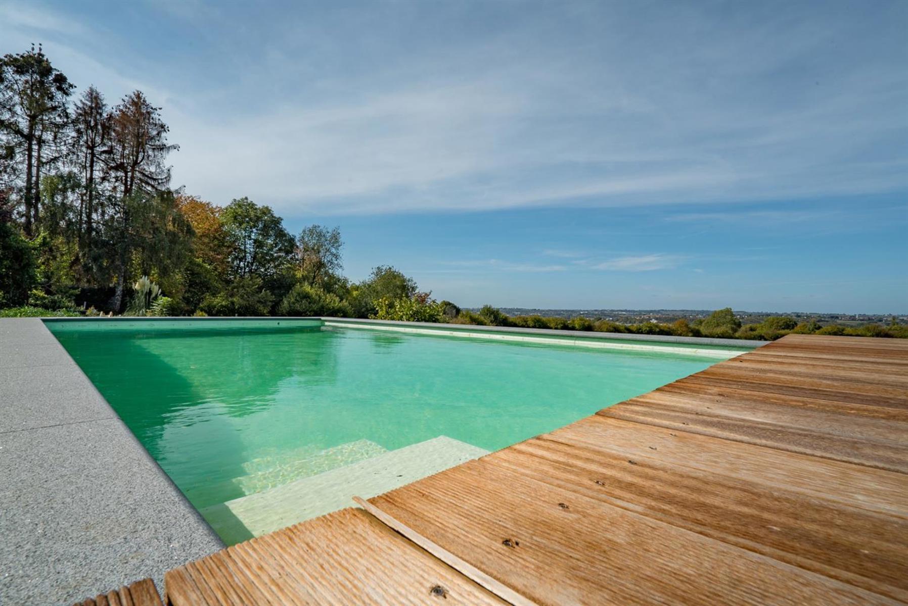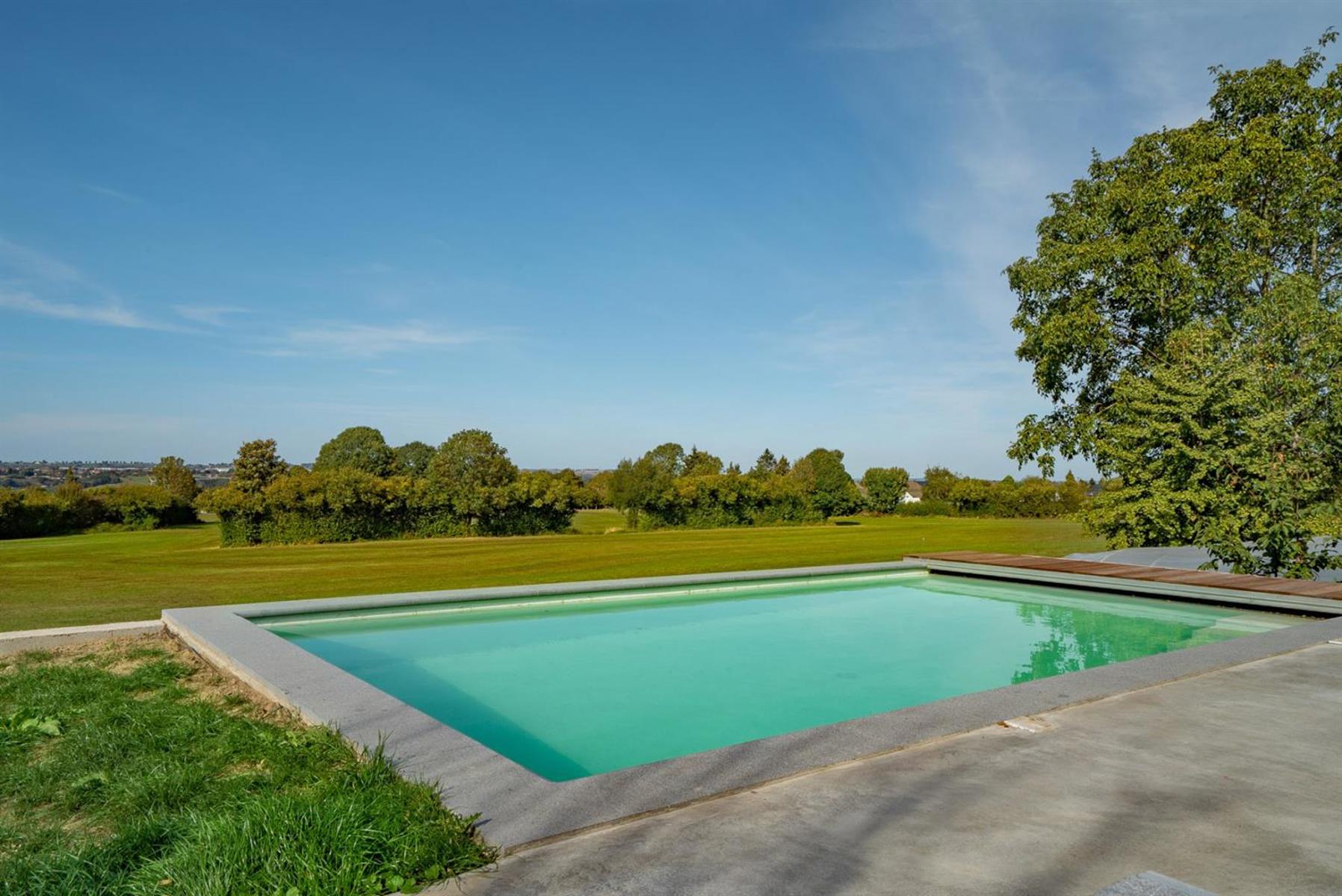 Allen Keapler and Partners, votre service immobilier haut de gamme en province de Liège, vous offre l’opportunité exceptionnelle de devenir les heureux propriétaires d’une sublime villa contemporaine ! Ses espaces lumineux, ouverts et idéalement agencés optimiseront votre qualité de vie une fois que vous y serez installés. Pour ce bien, uniquement des matériaux de qualité ont été choisis avec goût. Les dernières technologies ont également été utilisées dans cette nouvelle construction. Vous ne passerez évidemment pas à côté de sa vue dégagée à couper le souffle ni de sa piscine idéalement orientée pour être ensoleillée tout au long de la journée. Côté extérieur, vous retrouverez également un jardin entièrement aménagé à plat en contre bas de la piscine et une vaste terrasse à hauteur de celle-ci. Quelques aménagements extérieurs sont à prévoir si vous souhaitez préserver votre intimité une fois à l’extérieur. Ce bien est une opportunité rare sur le marché immobilier, saisissez-la ! (Cette nouvelle construction vient d’être finalisée fin mars 2018 et est donc soumise au régime TVA (21%) au lieu des frais d’enregistrement)
