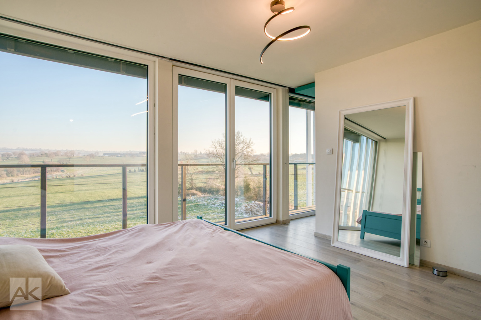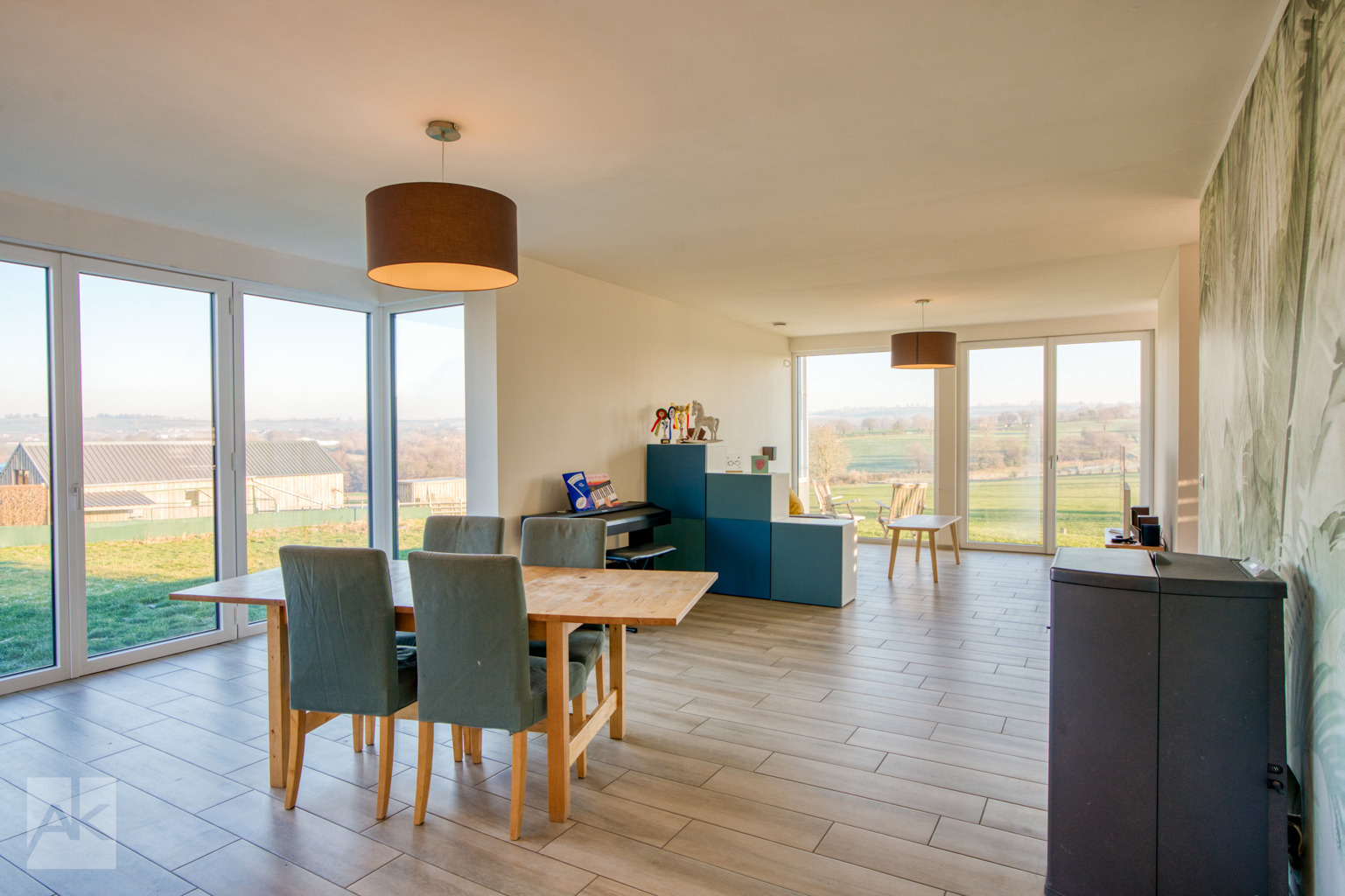L’architecture moderne de cette propriété vous procure un ensoleillement continu dans l’ensemble des pièces de vie grâce à de grandes baies vitrées orientées sud-est et une vue imprenable sur la campagne et les plaines des alentours.